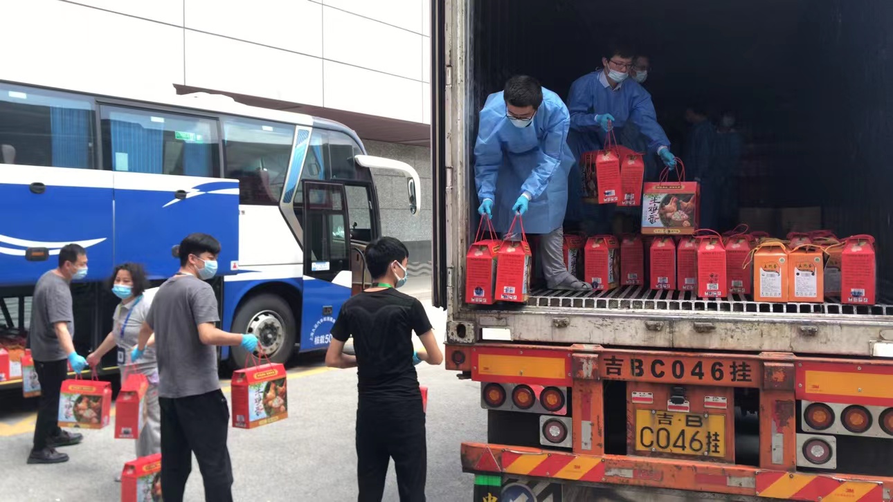 本輪疫情一開始,我們就啟動(dòng)了生活物資和抗疫物資的儲(chǔ)備。但在3月27日那個(gè)夜晚,當(dāng)數(shù)千人星夜趕回公司時(shí),依然有部分員工的休息條件異常艱苦。在后勤團(tuán)隊(duì)的努力下,這一情況很快得到了改善,睡袋、行軍床、氣墊床、折疊床等寢具不斷升級(jí)換代,還有部分員工住進(jìn)了創(chuàng)新園宿舍和康橋基地宿舍。食品的供應(yīng)也越來越豐富,青團(tuán)、粽子等美食沒有缺席傳統(tǒng)節(jié)日,西瓜、荔枝等時(shí)令水果如約而至,韭菜盒子、康橋小龍蝦等則成為了大家心心念念的網(wǎng)紅美食。供應(yīng)商、客戶和合作伙伴也紛紛送上了蔬菜、日用品、抗疫物資和藥物。集團(tuán)各級(jí)工會(huì)為大家提供了零食、衣物和日用品,還為駐廠員工的家屬、居家員工安排了蔬菜禮包。隊(duì)伍龐大的志愿者在物資搬運(yùn)、分發(fā)等工作中發(fā)揮了重要作用,特別是上百名TONY老師,為駐守員工完美解決了“頭等大事”!